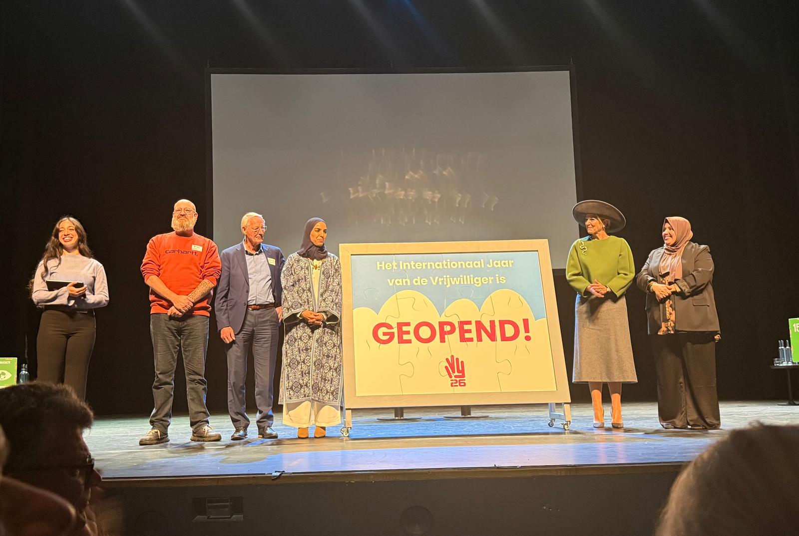Donderdag 12 februari heeft Koninging Máxima in de Stadsschouwburg in Utrecht het Internationaal Jaar van de Vrijwilliger 2026 officieel geopend. Onze eigen Isata Allouti (moeder van Marwa Khachab uit de MO11-4 en lid van het Verbindingsteam) was hierbij als UNO-vrijwilliger aanwezig.